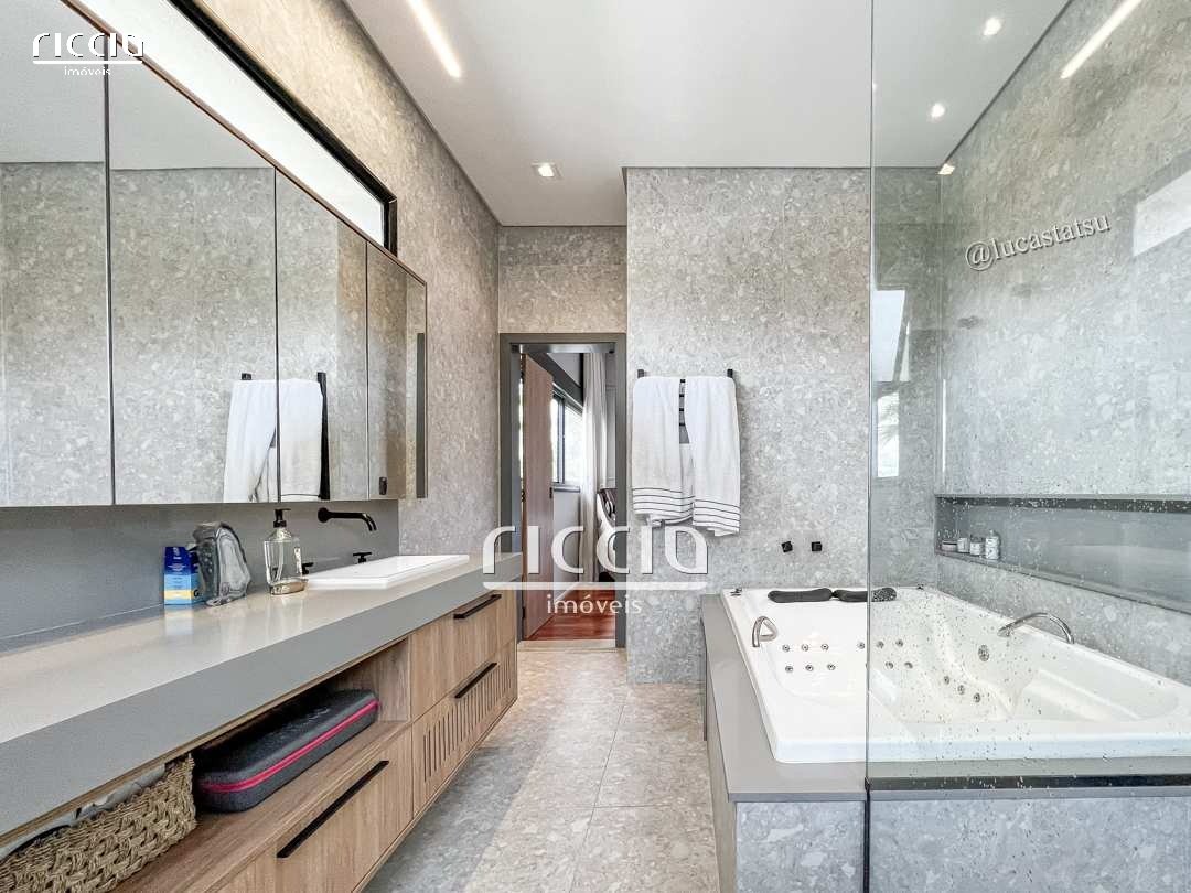 RI7118 - Sobrado no Reserva do Paratehy - Urbanova em São José dos Campos. Moderno e Encantador que está aguardando seus novos moradores. 5 suítes, piscina e sauna. Terreno: 700 m² e Construção: 470 m². Projeto: Ohira Arquitetura. Interiores : Sonner Muller. Composto por 5 suítes, Preparação para elevador, Area Gourmet, Piscina aquecida e Sauna. Piso inferior: garagem privativa coberta para 3 carros no mesmo nível dos dormitórios, roupeiro, sala íntima, 4 suítes plenas sendo a master com closet e banheiro com hidromassagem. Piso de taco de madeira nas áreas quentes. Acabamentos nobres em toda a casa. Banheiros com nicho e marcenaria rico em detalhes e acabamentos. Piso Superior: Sala de estar integrada a área gourmet, teto com ripado de madeira, lareira com revestimento em pedra natural, área gourmet com churrasqueira, forno de pizza, cozinha planejada com cooktop, 1 suíte ( utilizada como academia), piscina aquecida, sauna e banheiro externo, lavabo em pedra natural, área de serviço. Diferenciais: Preparação para elevador, Sistema de Alarme, Câmera, Aquecimento Fotovoltaica, Piscina aquecida, Sistema de som na área gourmet, sala e suíte master. Valor: R$ 6.000.000,00 (Aceita financiamento, possibilidade por permuta por Paesaggio ou terreno no Serimbura). Contato: (12) 3209-1918/(12) 98158-9882/ (12) 99638-8229 - WhatsApp - Vendas: Imobiliária Riccio Imóveis - Creci: 24.937J, os melhores imóveis em São José dos Campos, Região do Vale do Paraíba SP e Brasil - Casas, Apartamentos, Terrenos e Comercial. Baixe nosso aplicativo Riccio Imóveis em seu Smartphone e pesquise os imóveis diretamente de seu celular.