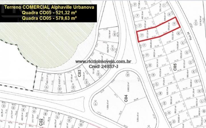 'Ref: 3978 - Excelente Terreno na parte comercial do Alphaville Urbanova, excelente localização, parte alta com ótima topografia. Quadra C05 com 579,63 m² de área, já liberado para construir, com frente 16,60 metros por 36,00 metros, O condomínio Alphaville Urbanova será o mais valorizado de São José dos Campos pelo seu lazer completo. Vista maravilhosa das montanhas. Na área Comercial já foi confirmado presença do McDonalds, Escolas, Farmácias, Clinicas, Bares e Restaurantes. O lote está quitado. Valor de Venda R$ 1450.000,00 - À vista - Aceita Financiamento Valor para Permuta R$ 1450.000,00 - Estuda Permuta por imóvel até 350.000,00.Contato: (12) 3209-1918 - WhatsApp (12) 98158-9882 - Vendas: Imobiliária Riccio Imóveis - Creci: 24.937J, os melhores imóveis em São José dos Campos, Região do Vale do Paraíba SP e Brasil - Casas, Apartamentos, Terrenos e Comercial. Baixe nosso aplicativo Riccio Imóveis em seu Smartphone e pesquise os imóveis diretamente de seu celular.'